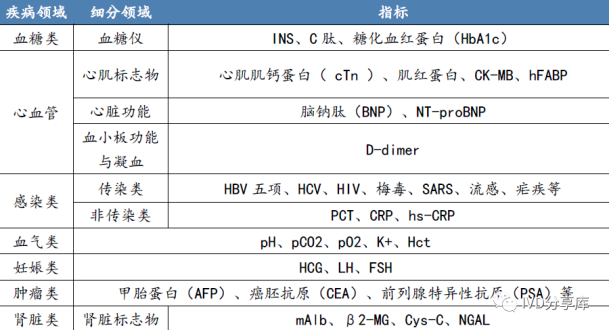 從目前市場份額占比來看,感染類+心標(biāo)類POCT占總產(chǎn)品(除血糖)份額最高,超過50%,緊接著是血?dú)忸?、妊娠、其他快檢類,結(jié)合來看感染和心血管產(chǎn)品目前仍然是處于成長期,未來隨著胸痛中心、腦卒中中心等中心的建立,具有持續(xù)增長的動力。